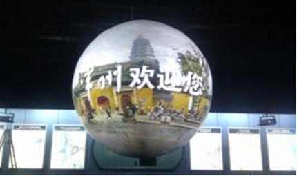 在外球幕投影中,觀眾們可以看到一個地球般的圓球扮演了投影幕的角色,上面展示常州的四季風光,并有“常州歡迎您”等字樣滾動播放,頗受歡迎。