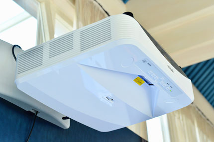 除了師生的使用,Vivitek(麗訊)對DX761Z-UST激光超短焦教育投影機的安裝方面也進行了智能化設計,DX761Z-UST采用居中鏡頭設計,重心居中,長期吊裝不會出現位移;特有的四角校正功能可支持垂直&水平±30度梯形校正,利用軟件給施工帶來更便捷的安裝和調試,大大縮短人工成本和時間,輕松應對任何安裝環境。
