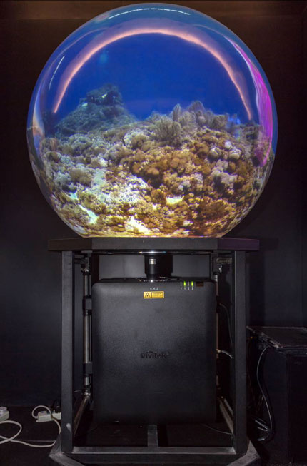 由8000LM 4K激光投影機(jī)RK85013和魚眼鏡頭組成的“內(nèi)投球解決方案”也非常吸引眼球。夢(mèng)幻般的藍(lán)色球體將海底絢麗的景致展現(xiàn)得美輪美奐。這得益于4K分辨率帶來的清晰的視覺效果和8000LM的亮度。RK85013配有8種電動(dòng)鏡頭,可以實(shí)現(xiàn)1秒拆換,投射比從0.38到8.26:1,并具備鏡頭記憶功能,適用于很多場景。