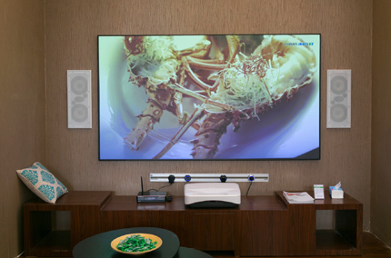 Vivitek(麗訊)在本屆上海設計周展示了上市不久的超短焦激光全高清家用投影機DH765Z-UST,它采用了使用壽命長達20000小時以上的激光光源,擁有0.233:1超短焦投射比,54厘米的距離即可投射出100寸超大畫面,放置于電視柜上即可使用,為空間有限的家庭用戶提供了理想選擇。性能方面,DH765Z-UST擁有4000流明亮度、30000:1高對比度、支持1080P原始分辨率和全格式3D,符合Rec.709色域標準,提供逼真的色彩還原,在客廳中便可輕易實現震撼的影院級效果,2.35:1縱橫比畫面比例更是打造出原汁原味的好萊塢大片視覺效果。