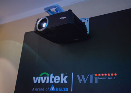 除了HK2288,上市不久的Vivitek(麗訊)超短焦激光投影機DH765Z-UST也受到了現場觀眾的廣泛關注,它采用了使用壽命長達20000小時以上的激光光源,擁有0.233:1超短焦投射比,54厘米的距離即可投射出100寸超大畫面,放置于電視柜上即可使用,為空間有限的家庭用戶提供了理想選擇。性能方面,DH765Z-UST擁有4000流明亮度、30000:1高對比度、支持1080P原始分辨率和全格式3D,符合Rec.709色域標準,提供逼真的色彩還原,在客廳中便可輕易實現震撼的影院級效果,2.35:1縱橫比畫面比例更是打造出原汁原味的好萊塢大片視覺效果。
