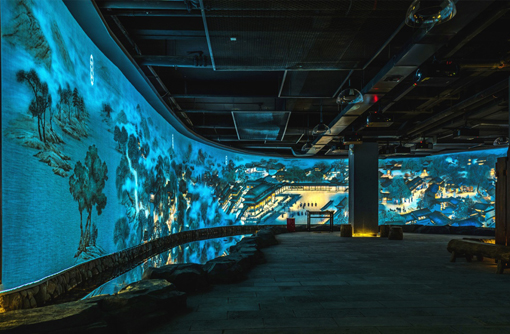 《納西風(fēng)情圖》動(dòng)態(tài)畫卷全長(zhǎng)100米,高3米,是納西文化體驗(yàn)館中最重要的展示區(qū)域,也是國(guó)內(nèi)首個(gè)百米動(dòng)態(tài)民俗風(fēng)情長(zhǎng)卷。《納西風(fēng)情圖》前后歷時(shí)3年,共有百余位技術(shù)人員參與創(chuàng)作,畫卷以“茶馬古道”為線索,通過不同的人物間的交互,讓觀眾直觀感受麗江的繁華。整副風(fēng)情圖借助20臺(tái)Vivitek(麗訊)DU7090Z激光工程投影機(jī),采用20通道畫面拼接融合打造而成。《納西風(fēng)情圖》畫面靈動(dòng)多彩、細(xì)節(jié)畢現(xiàn),人物栩栩如生,形象生動(dòng)地展示了納西的風(fēng)土人情、傳統(tǒng)景致,再現(xiàn)了明朝最鼎盛的木府時(shí)代。