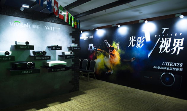 Vivitek(麗訊)在本次CIT2018的展臺(tái)風(fēng)格獨(dú)特鮮明,以目前人氣最高的世界杯為主題,采用影吧機(jī)型HP1601F、超短焦激光家用投影機(jī)DH765Z-UST和4K家用投影機(jī)UHK528,分別打造了“激情足球Bar”、“歡愉時(shí)刻”、“4K發(fā)燒領(lǐng)域”三組不同風(fēng)格元素的家庭影院,并搭配甲譜真影院幕布等相關(guān)設(shè)備。精彩逼真的方案展示和豐富齊全的家用投影產(chǎn)品,讓觀眾可以邊享受世界杯帶來的激情與狂歡,邊身臨其境感受投影的魅力與震撼。