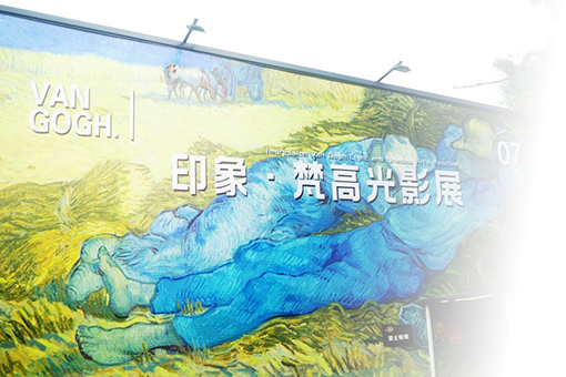 幅作品及互動影像將梵高經典作品以新媒體方式呈現。步入場館可見,數十臺明基工程投影機組成方陣,一一再現傳奇畫家梵高的畫作,而互動裝置悄然散落在七個主題場館內,等待人們前往探尋。