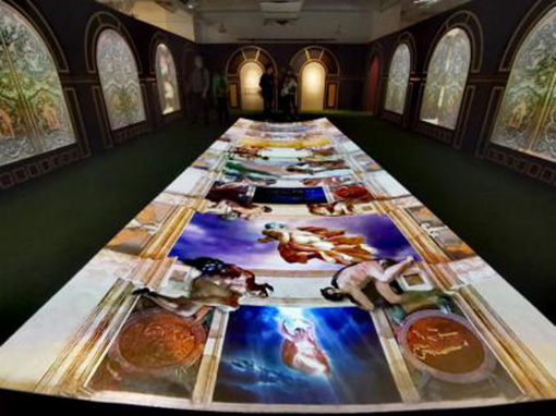 就在前不久,武漢米開朗基羅沉浸藝術(shù)展便是由16臺(tái)明基工程投影機(jī)LK953ST完成。在整個(gè)精密投影方案加持之下,整個(gè)空間猶如穿越幾世紀(jì)回到文藝復(fù)興時(shí)期,西斯廷教堂天頂壁畫360度全景還原,投影機(jī)4K清晰度和96%色域覆蓋所呈現(xiàn)出的鮮艷準(zhǔn)確的色彩,仿佛未經(jīng)歲月腐蝕,灼灼生輝引人贊嘆。