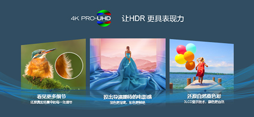 PRO-UHD技術,不僅支持4K分辨率,借助獨特的3LCD技術,實現更高色彩亮度,讓HDR更具表現力,還原畫面真實色彩,無論白天黑夜均可呈現清晰、明亮、生動的優質畫面,實現身臨其境的觀影感受,為每一個家庭帶來超越邊界的多彩生活。
