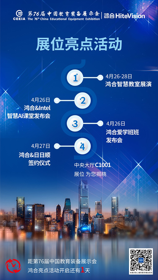 除了上面所說的三大亮點新品,本次鴻合科技參展期間還將舉行與Intel合作研發的智慧AI課堂發布會,以及全新改版的致力家校共育的鴻合愛學班班軟件發布會。另外,為了進一步完善企業的售后服務體系,鴻合科技還將在現場與海爾集團旗下的專業服務平臺日日順舉行簽約儀式,敬請期待!