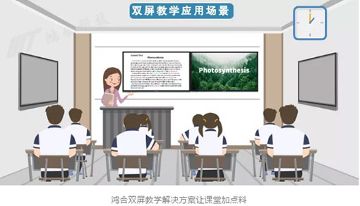 針對(duì)教師的教學(xué)實(shí)際需求,鴻合科技借助通過物聯(lián)網(wǎng)、無線通信、多點(diǎn)觸屏等技術(shù),融合軟硬件教學(xué)設(shè)備,搭建出新型雙屏互動(dòng)教學(xué)環(huán)境,構(gòu)建了一種全新的雙屏教學(xué)解決方案。兩個(gè)屏幕既可以融合為一個(gè)整體使用,又可以獨(dú)自顯示不同的教學(xué)內(nèi)容,還可以彼此相互關(guān)聯(lián),同時(shí)保留了傳統(tǒng)多媒體教學(xué)、交互式教學(xué)的優(yōu)勢(shì),為教師提供多元內(nèi)容展示手段和方式,滿足多樣化的課堂教學(xué)。