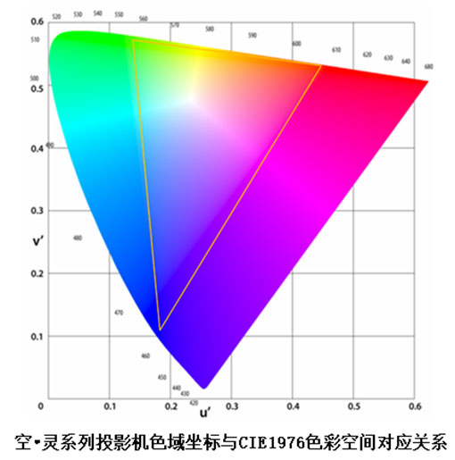 按照CEL認證規定,投影機的“色域覆蓋率”≥CIE1976色彩空間的33%以上,就可以獲得高色域投影機認證。而NEC“空•靈”全系列產品的色域覆蓋率均超過這一數值,完全符合高色域投影機標準。“高色域投影機”比“普通投影機”的色彩空間更大,空間內容納的色彩坐標更多,因此對色彩維度和精度的表現力更強。