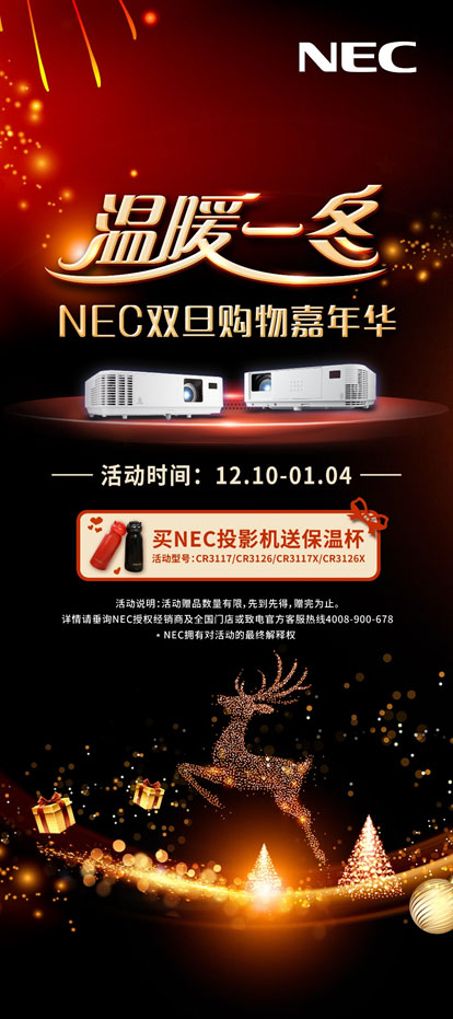 溫暖是一種態(tài)度,給人溫暖是一種責(zé)任。誕生于1979年的NEC投影機(jī)發(fā)展至今已有40年歷史,一直不斷服務(wù)于商務(wù)、教育、工程、影院等各行業(yè)用戶,品質(zhì)值得信賴。而此次持續(xù)近一個(gè)月的“NEC雙旦購物嘉年華”,則是把優(yōu)質(zhì)的產(chǎn)品賦予了暖心的福利活動,給寒冷的冬日增填了一份濃濃的暖意。