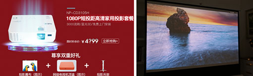 CD3105H的4899元高端家庭娛樂組合套餐,將讓想組建家庭影院的用戶心動不已,搭配了網絡電視機頂盒、投影幕布及投影吊架的組合套餐著實劃算。此外,購買該套餐的用戶將享受免費上門安裝服務,對數碼小白無疑是一大福音。