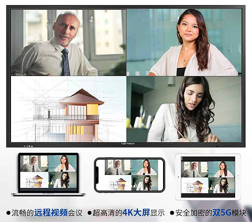 不僅顯示出色,NETRIX在會議效率的提升上也深受好評。集電視、白板、音響、攝像頭、麥克風等于一身的NETRIX,擁有無線投屏、視頻會議、靈活批注等多種功能,讓日常會議效率大幅提升。通過電腦、手機、iPad等設備,可以輕松快速穩定地將畫面內容無線傳屏到NETRIX的4K高清大屏上,擺脫布線的麻煩,令會議效率更高;遠程多方視頻會議功能,令遠程會診方便快捷,為疫情診治助力,保障疫情期間工作高效協同。如此高效會議的背后源自于NETRIX內置Android8.0系統、四核處理器、雙5G模塊等強勁性能的大力支持。