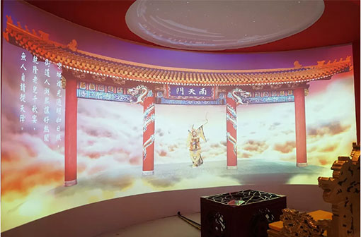 重頭戲“暢音戲樓,九九大慶”展項由兩臺ZU1050創造弧形沉浸影像,無需額外配備融合器,創造一體感出色的超寬幅畫面。