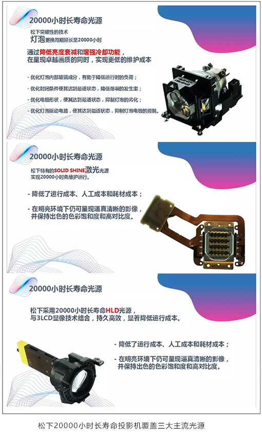 本系列產品推廣會采用小型座談會的形式,集中就“松下20000小時長壽命光源”系列投影機的產品功能特點、成功案例向與會來賓進行詳細介紹。目前,松下20000小時長壽命光源投影機已經覆蓋燈泡、HLD、激光三大投影機主流光源,可適用于不同行業用戶市場,滿足多樣化安裝環境需要。