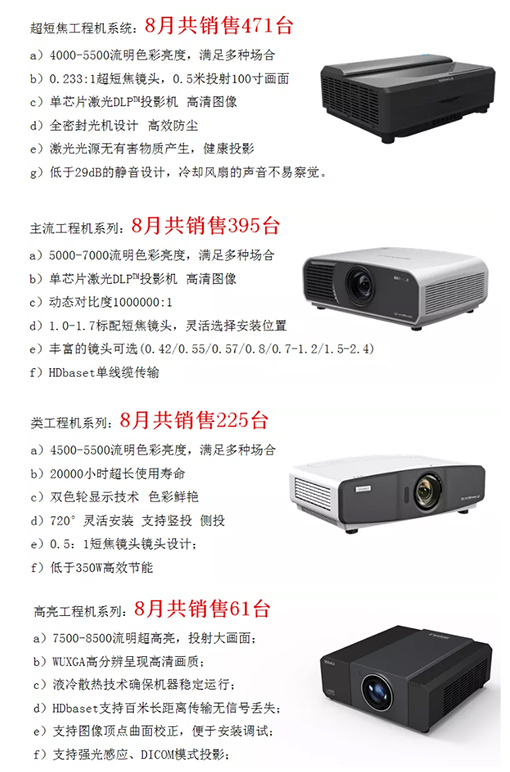 2019年8月,視美樂業務市場捷報頻傳,激光工程機單月銷量突破千臺大關,同比實現大幅度上揚。根據激光工程投影市場的分析報告統計,2019年二季度銷量排名前三的品牌平均銷量在一千兩百臺左右(3個月總計銷量),而視美樂8月單月銷售就突破千臺,成績斐然。