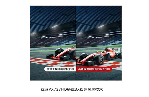 優派PX727HD內置高速訊號處理引擎,大幅降低影音訊號傳遞的時間差,明顯減少畫面延遲,影片、電競、體育賽事畫面時時投影,帶來流暢連貫、酣暢淋漓的視聽體驗。